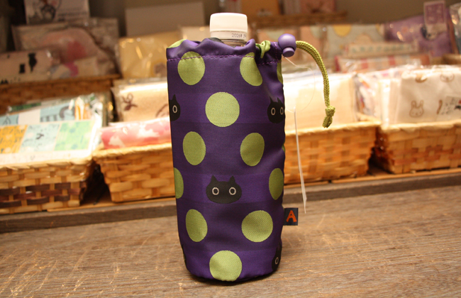 ぱっちりおめめのMEMEと大ぶりなドットのデザインがキュートなペットボトルケースです。