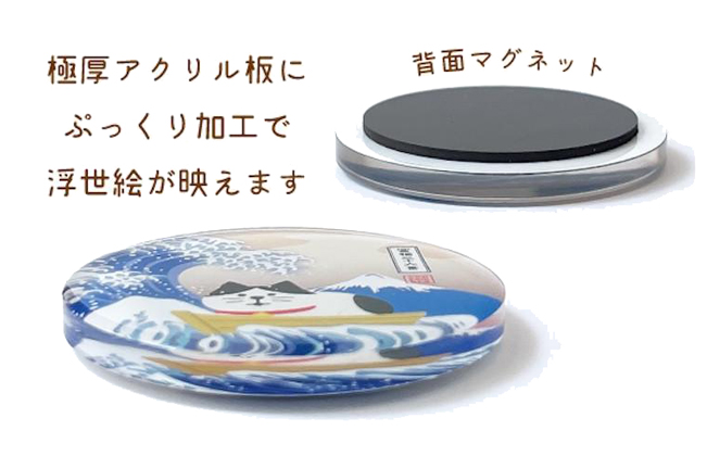 極厚アクリル板にぷっくり加工で浮世絵が映えます。