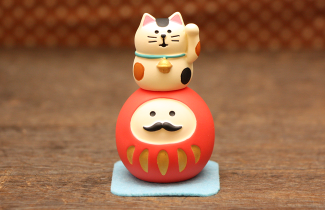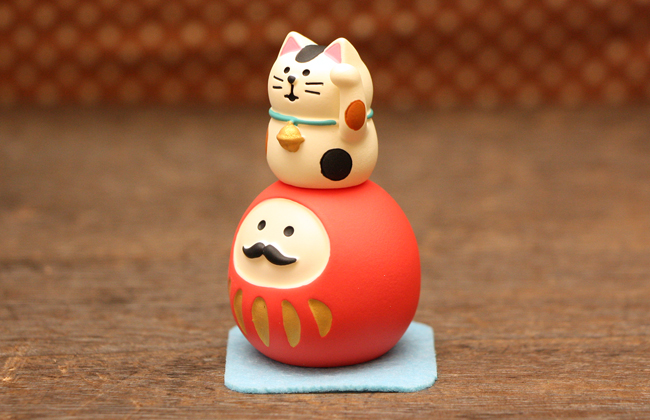 だるまに招き猫、福が重なって心強さこの上ない開運飾りです。