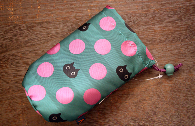 ぱっちりおめめのMEMEと大ぶりなドットのデザインがキュートなペットボトルケースです。