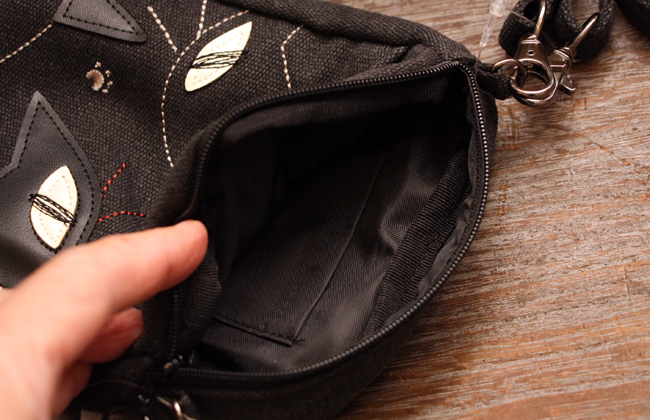 外ポケットにはシンプルカラーのツンちゃんモチーフ。